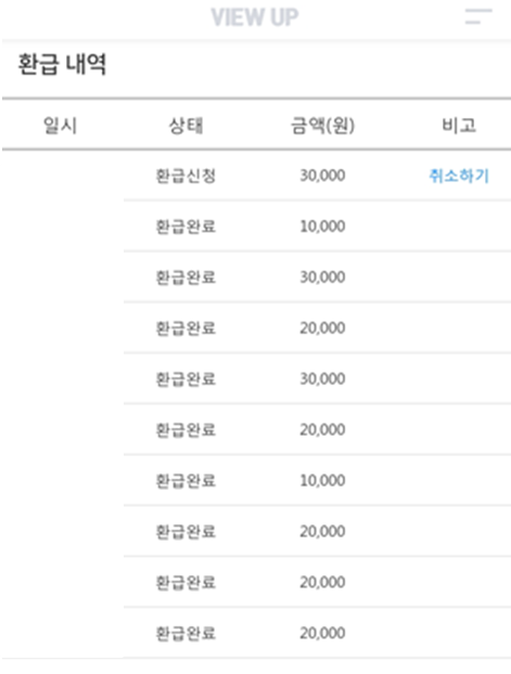 뷰업은 1만원 단위로 환급 신청할수 있습니다. 그리고 4만원 이상 신청하면 3.3% 세금 공제후 입금 되니 최대 3만원으로 신청하는 것이 좋아요~ 그리고 뷰업의 보상활동을 해서 적립금이 쌓이는게 이걸 바로 환급 받을 수는 없고 한달 뒤에 한급이 가능합니다